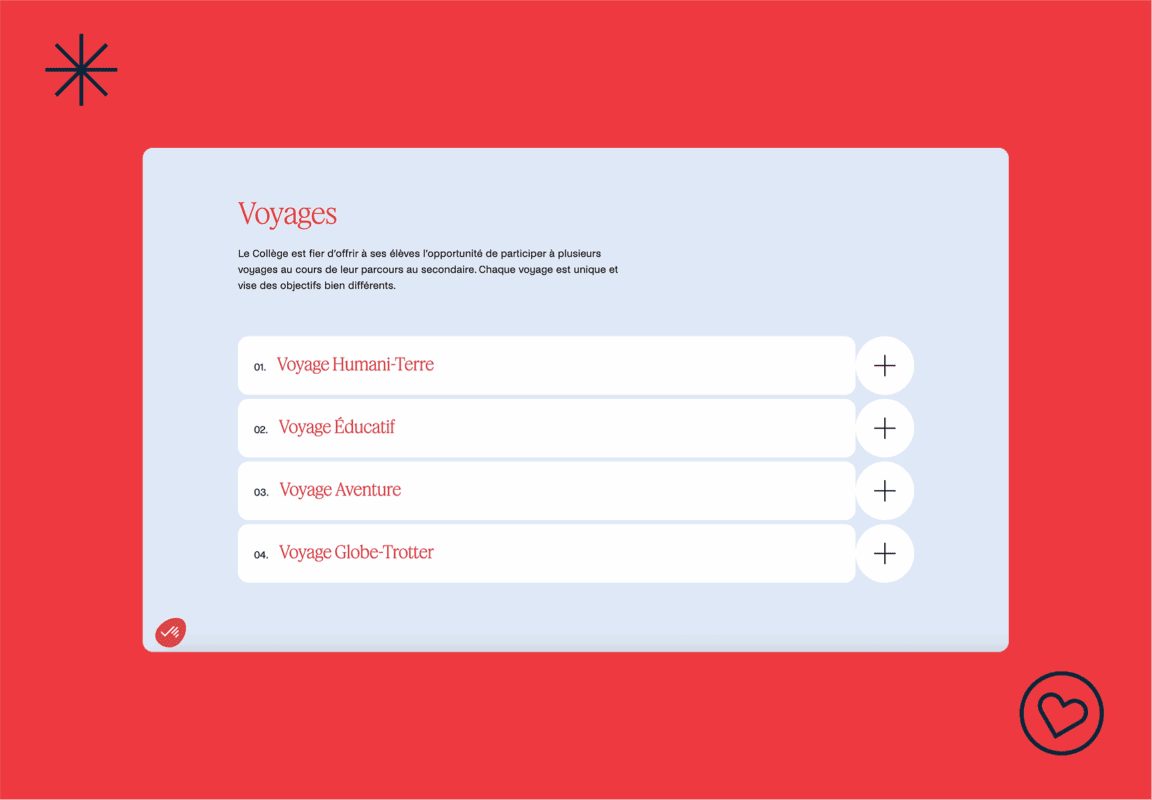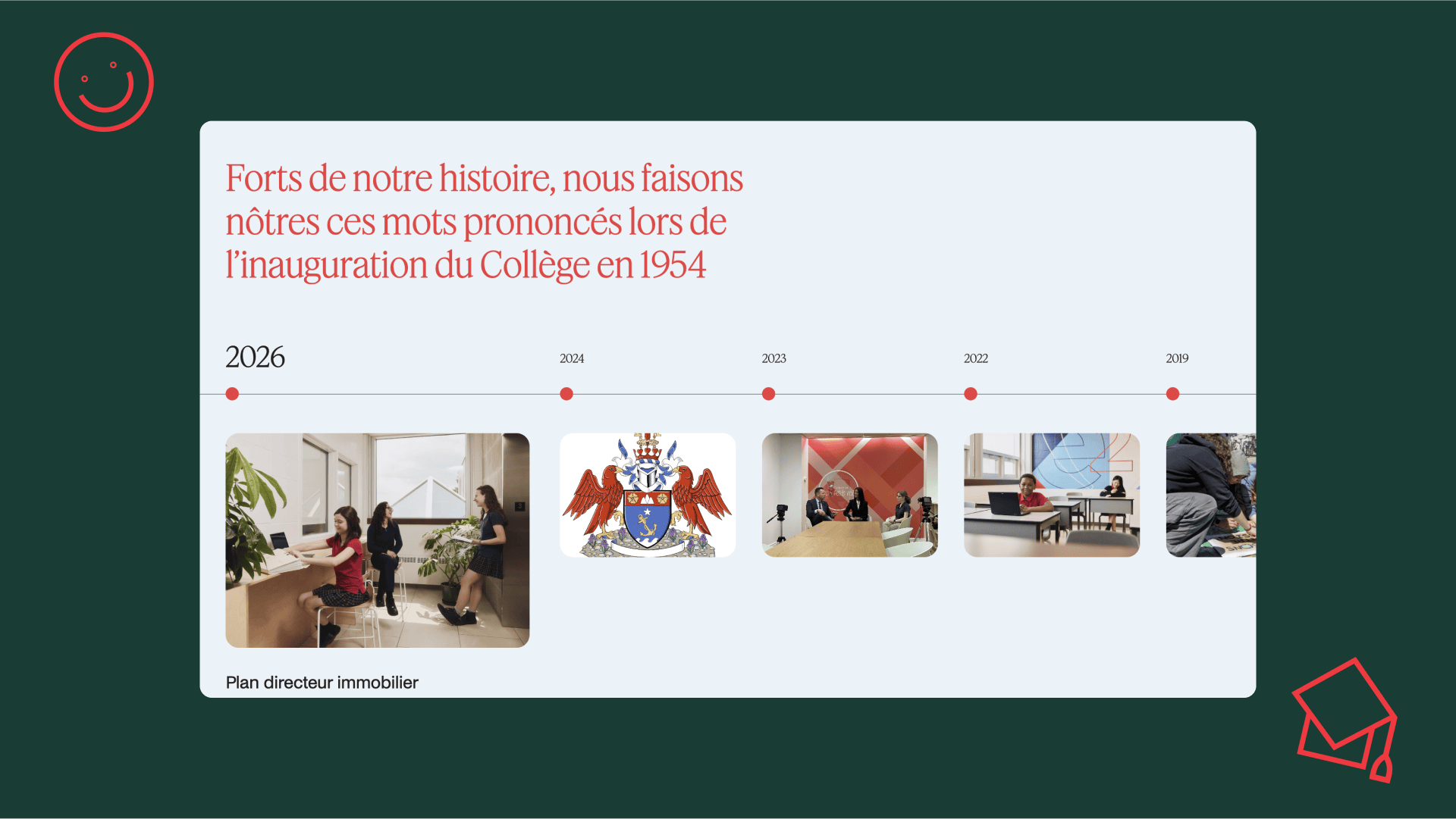 - Modernize the visual identity. Adopt a contemporary design aligned with the Collège’s new image to reinforce its visual impact and online appeal.
