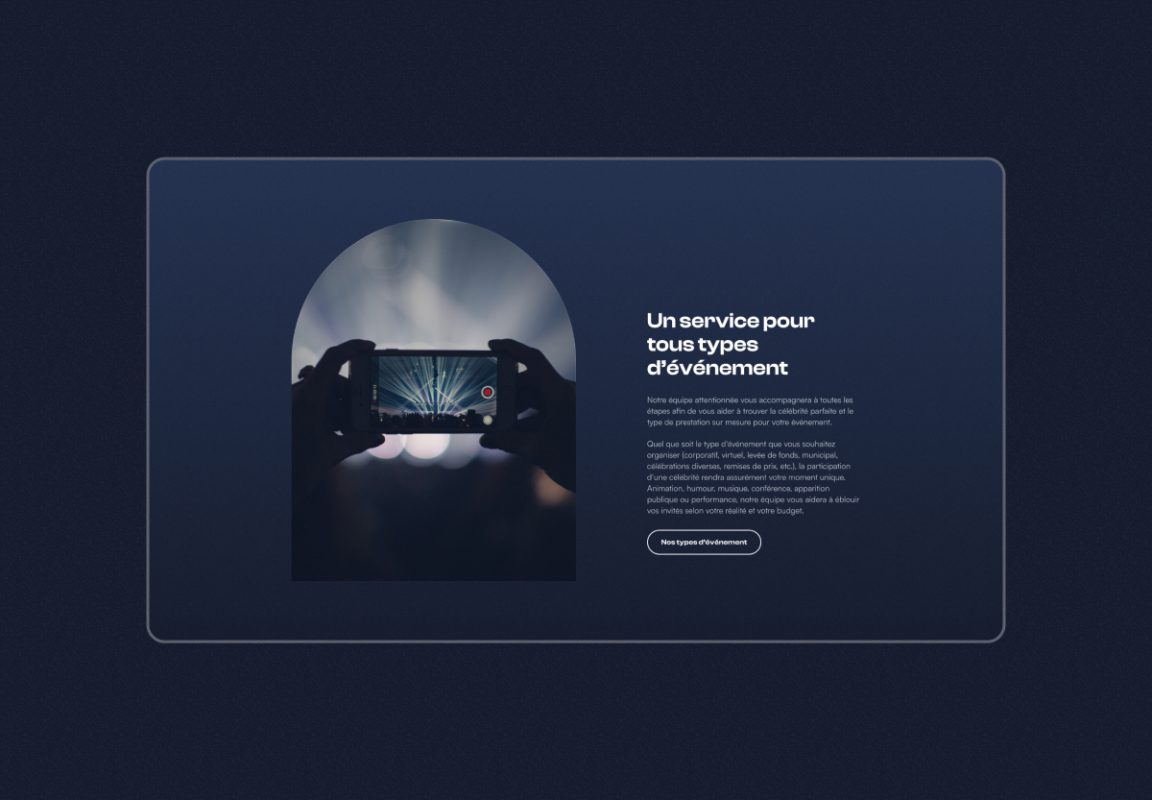 The platform had to reflect the company’s mission (making celebrities accessible) and enable a structured display of various multi-talented artists.