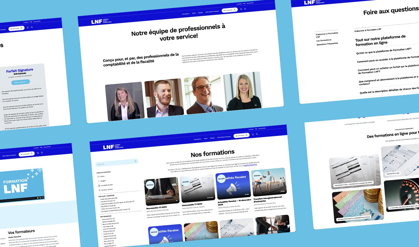 Notre mission consistait à repenser entièrement le site web vitrine ainsi que la plateforme LMS (LearnDash) de Formation LNF afin d’offrir une expérience utilisateur optimisée et une meilleure gestion des formations en ligne. Un des enjeux majeurs du projet était de réaliser cette refonte tout en conservant l’intégralité de la banque de données existante, assurant ainsi une transition fluide pour les utilisateurs et administrateurs du site.