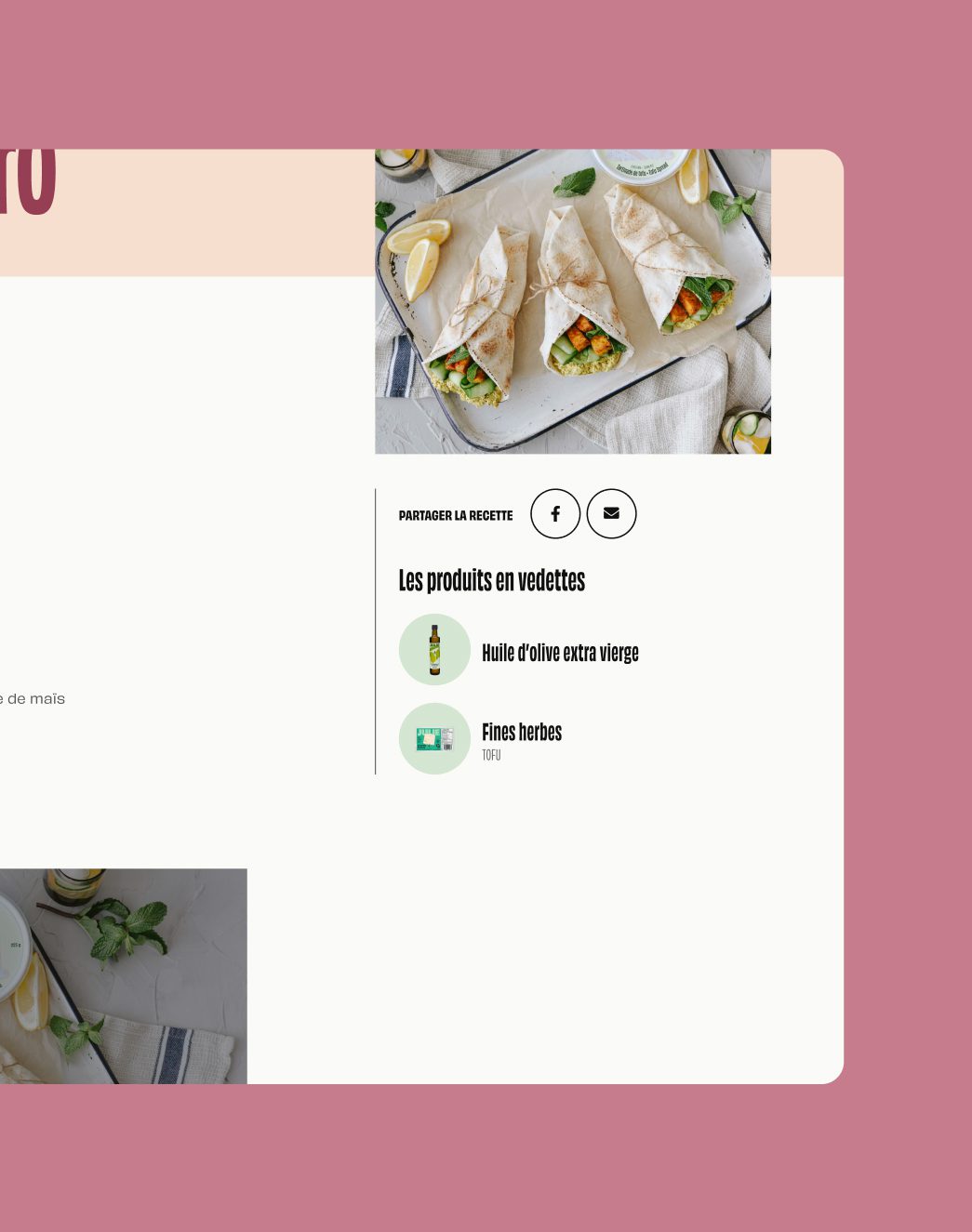Les recettes permettent également un accès rapide aux fiches des produits en vedette dans la recette.