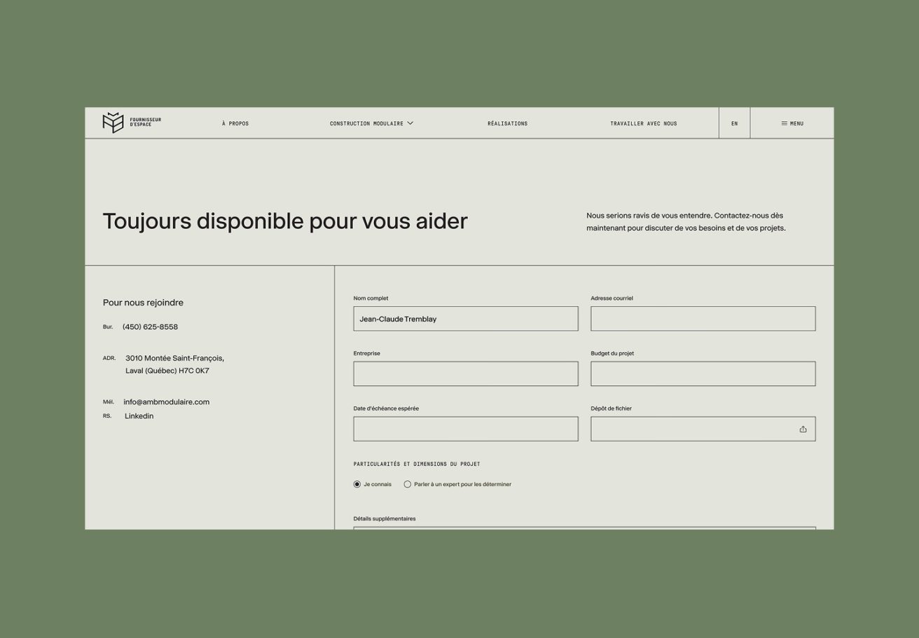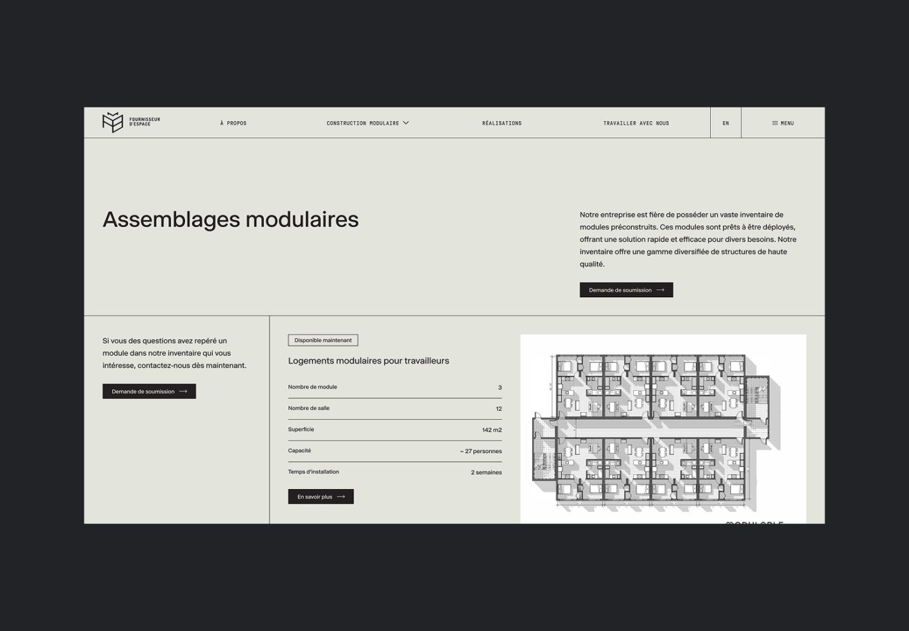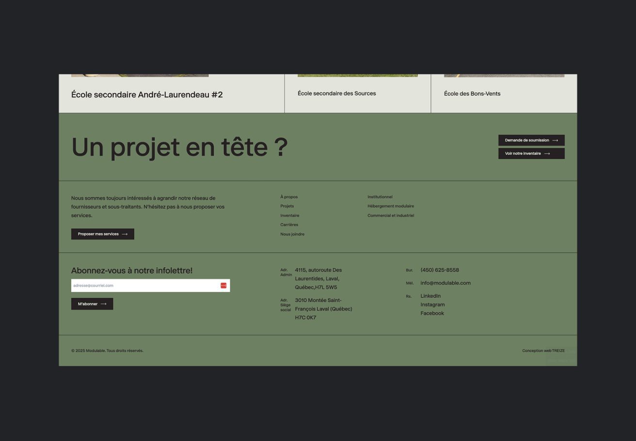 À la suite du travail du Studio Caserne pour créer l’identité de marque de ce qui deviendra Modulable, nous avons été mandatés pour concevoir et développer un site web vitrine bilingue qui en reflète fidèlement l’essence.