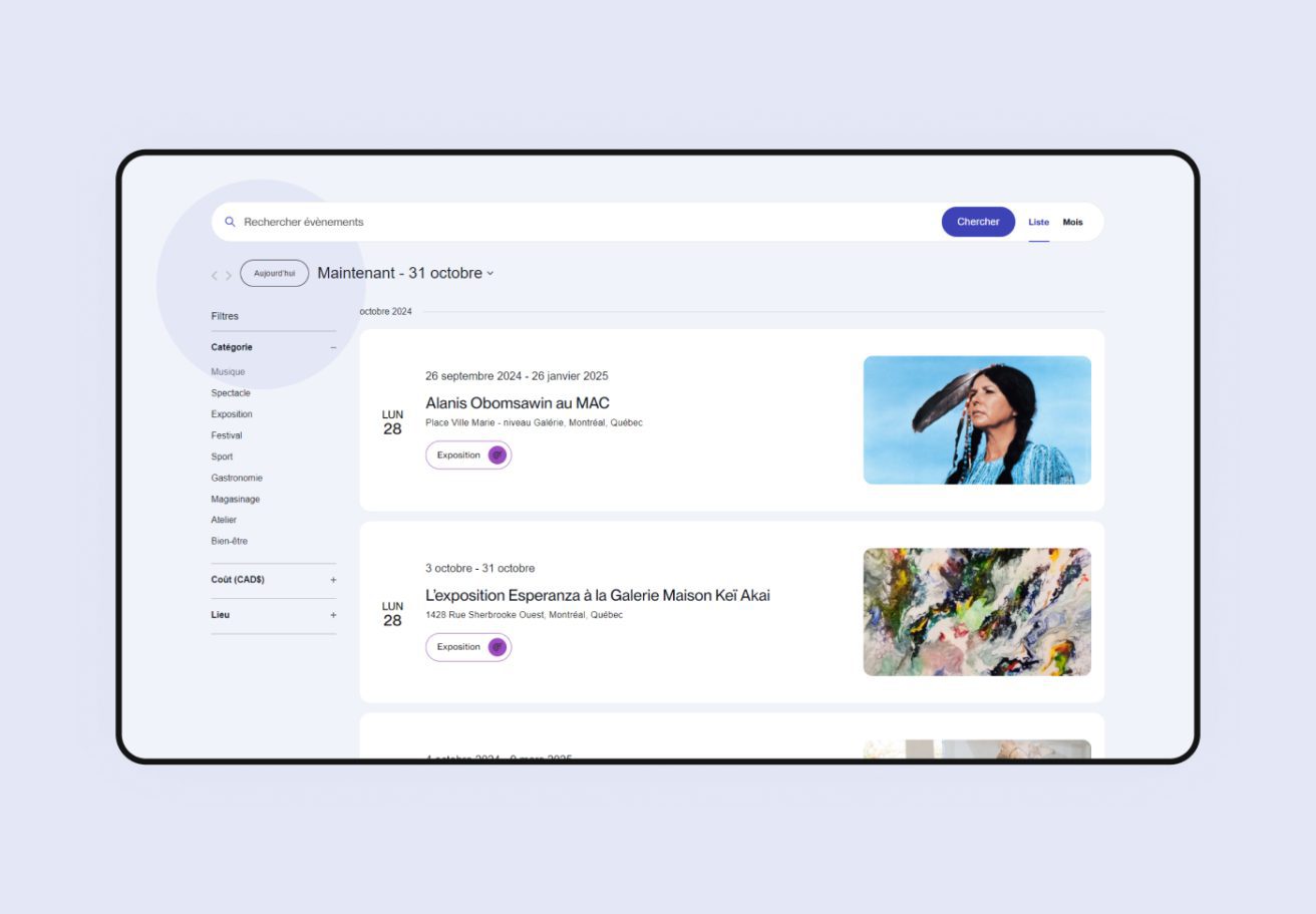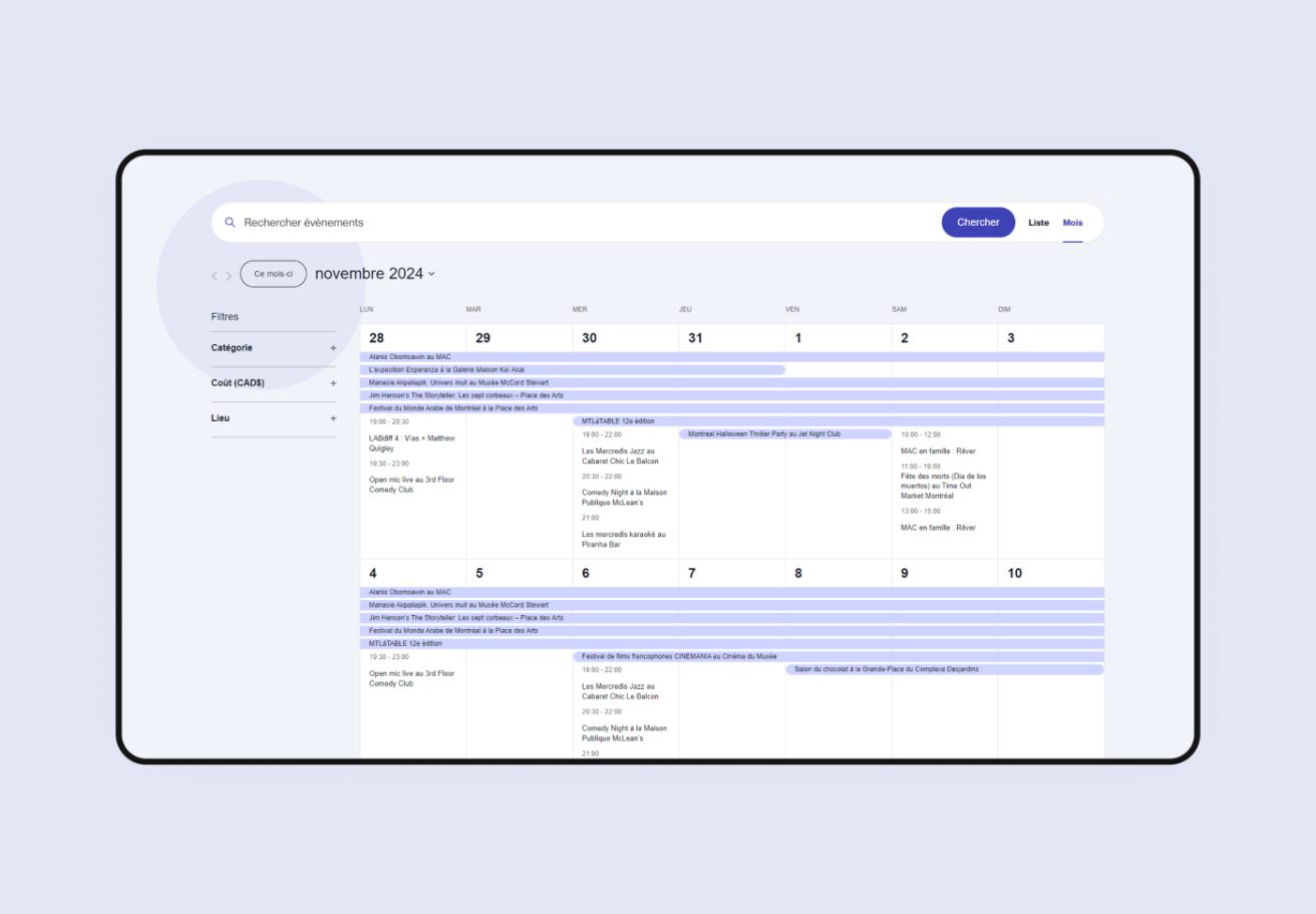 Le centre-ville est un réel hub d’activités où des dizaines d’évènements prennent place mensuellement. On souhaitait doter l’équipe du centre-ville d’un espace numérique fonctionnel et moderne qui allait permettre de facilement rassembler tous les évènements du centre-ville à un seul endroit. On a donc configuré un espace évènements sur le site web qui offre aux utilisateurs différentes fonctionnalités pour faciliter la recherche d’un évènement qui répond à leurs besoins : barre de recherche, filtres, vue d’ensemble par liste ou par mois ainsi qu’un système d’étiquettes et d’iconographies personnalisées pour distinguer les différentes catégories d’événements. Avoir une vue d’ensemble sur tout ce qui se passe au centre-ville n’aura jamais été aussi simple!